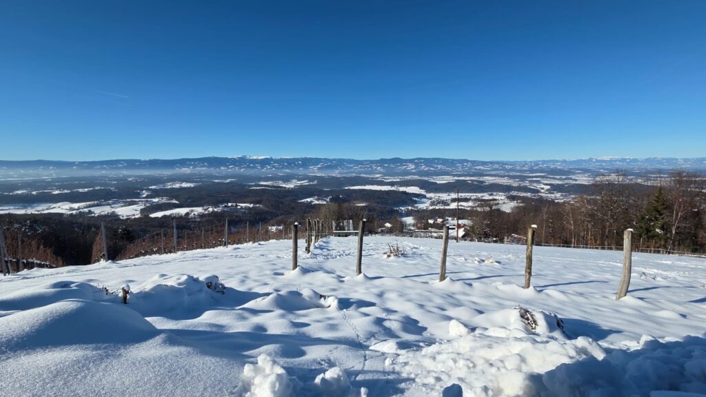 Den herrlichen Ausblick genießen, den Rehen auf der Spur sein, Durch die Winterlandschaft spazieren –  und kurz einmal beim 24-Stunden Hofladen der Sausaler Gustothek `reinschauen: Obstfluffies probieren oder noch ein paar Glücksbringer kaufen!